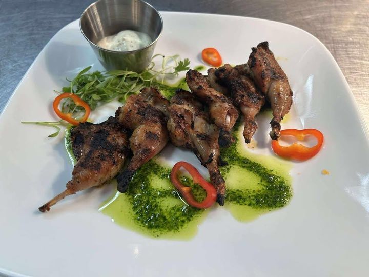 BLACKENED AND GRILLED QUAIL LEGS SERVED WITH GORGONZOLA DIPS$16.50