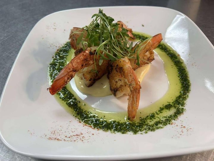 JUMBO SHRIMP WITH HOUSE SPICE BLEND SERVED WITH ROASTED GARLIC AND CILANTRO CREMA$15.00