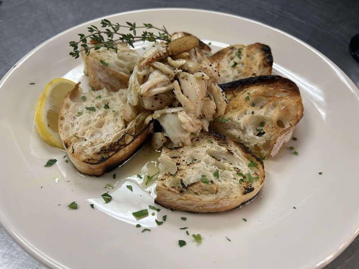 SAUTEED JUMBO LUMP CRAB MEAT IN BROWN BUTTER WITH LEMON AND THYME ON GRILLED BREAD$20.00