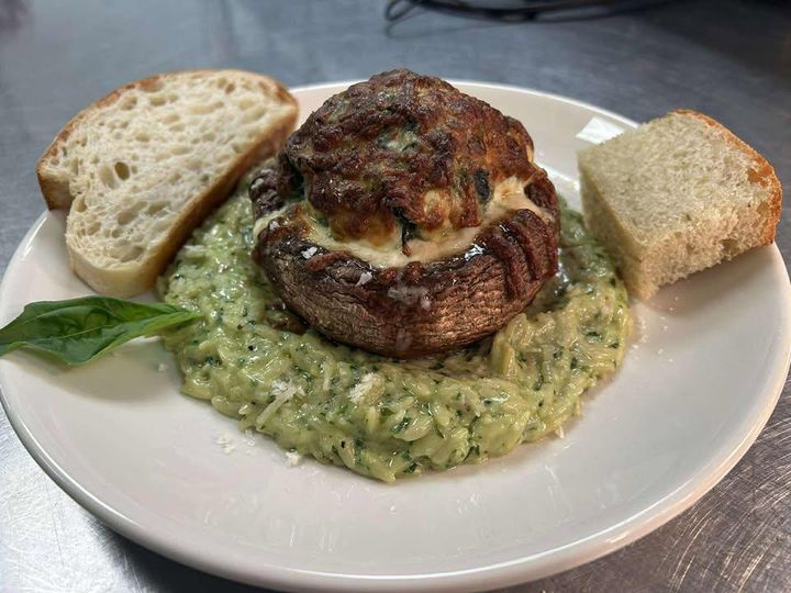 VEGETARIAN OPTION SPINACH, ROASTED GARLIC, TOMATO, AND PROVOLONE OVER CREAMY PESTO ORZO PASTA$20.00