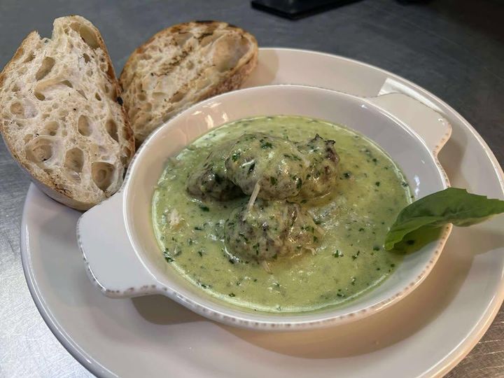 5 MEATBALLS IN A CREAMY BASIL PESTO SAUCE$12.00