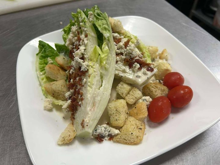 ARTISAN LETTUCE , BACON, TOMATO, GORGONZOLA CHEEESE, CROUTON AND HOUSE ROASTED GARLIC RANCH$13.00