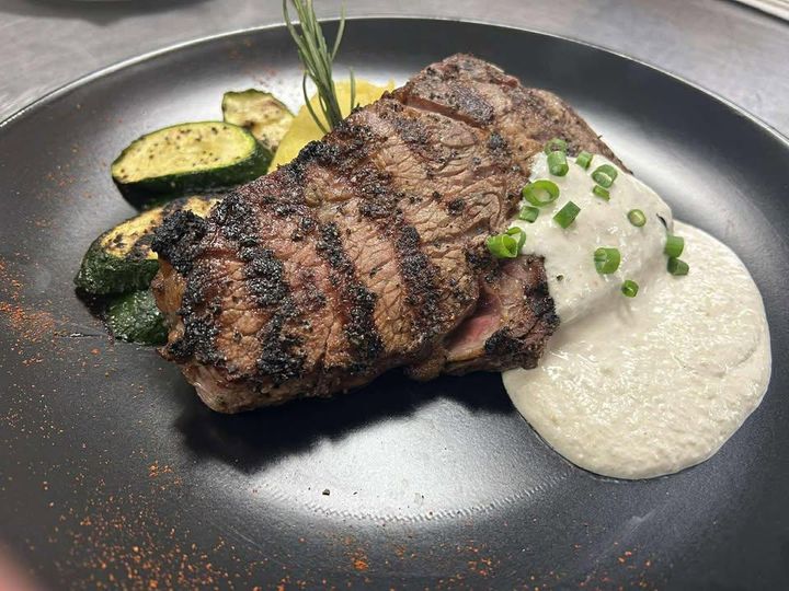 GRILLED RIBEYE, HORSERADISH SAUCE, GOUDA MASH, GRILLED ZUCCHINI$43.00